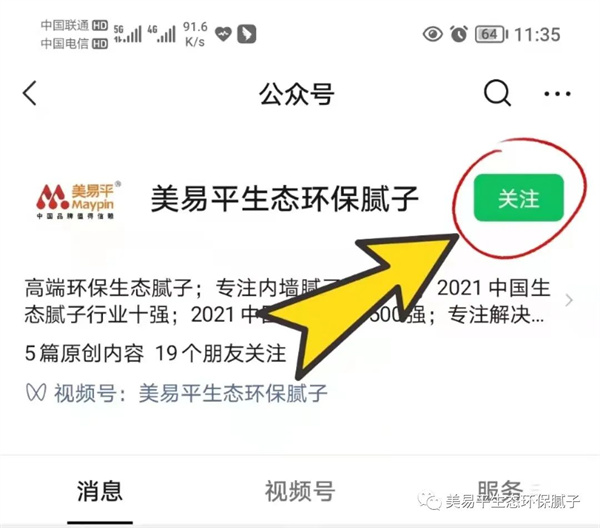 步驟四:點(diǎn)擊關(guān)注美易平生態(tài)環(huán)保膩?zhàn)?/span>
