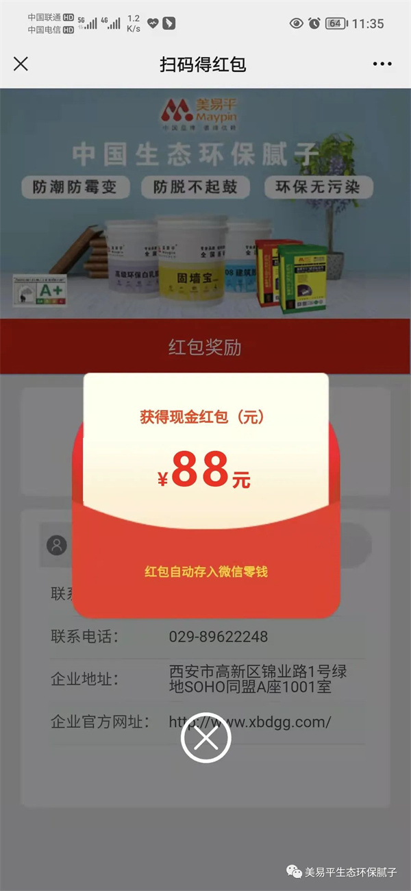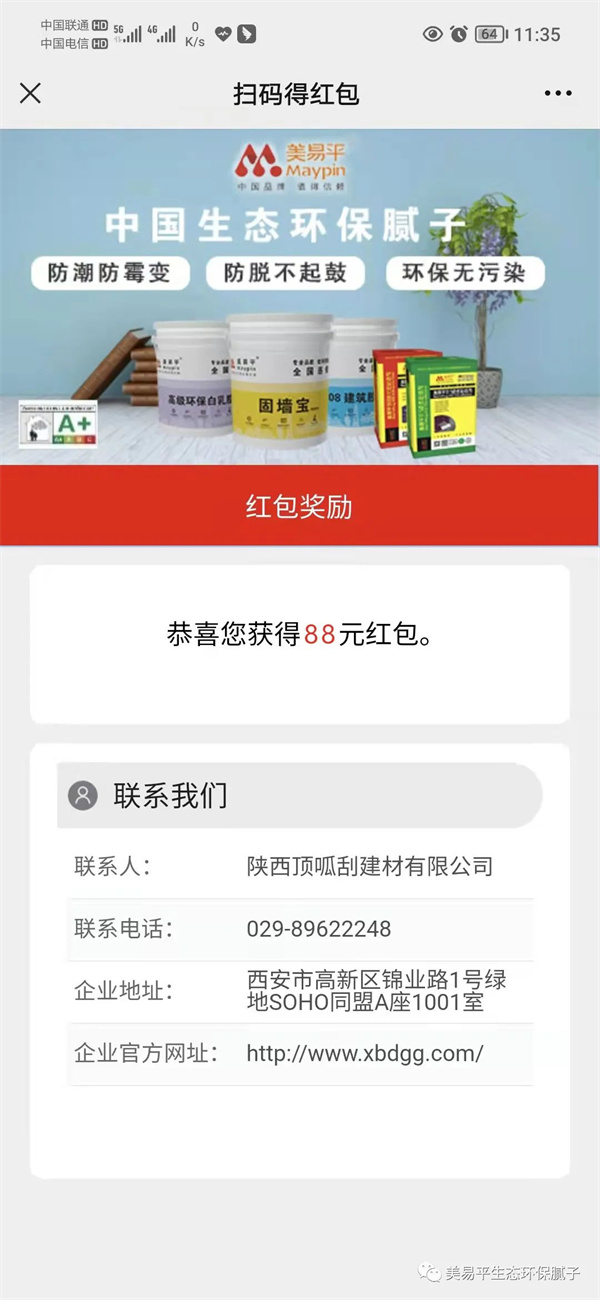詢問門店,購買美易平指定產(chǎn)品,用手機(jī)微信掃描包裝袋里面的二維碼,領(lǐng)取微信紅包,最高中獎(jiǎng)金額88元。