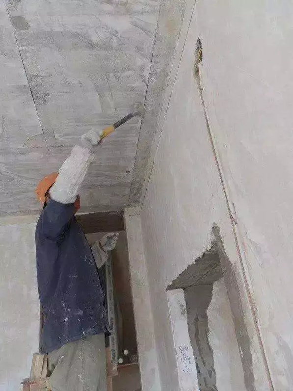 如果原墻面有空鼓或裂縫,要事先處理,將那里的墻面鏟掉重做。